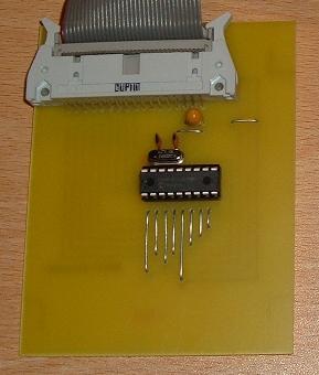 The necessary add-on consists of a small PCB containing an inexpensive 18 pin PIC chip (16F627) with a few ancillary components. This plugs into the Centronics socket on the main board as shown in Figure 6, which also shows the MIDI lead emerging from the DIN socket. This is connected at its far end to a MIDI port on the computer which is running either Prog Organ or any other VPO or MIDI-compatible instrument. This is possible because, now the console scanner has been ‘MIDIfied’, it can be used with a much wider range of instruments, not just Prog Organ. A close-up photograph of the parallel port emulator board is at Figure 7.