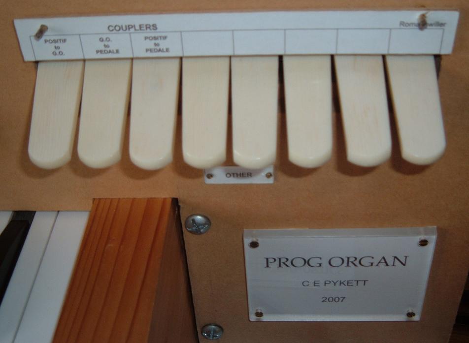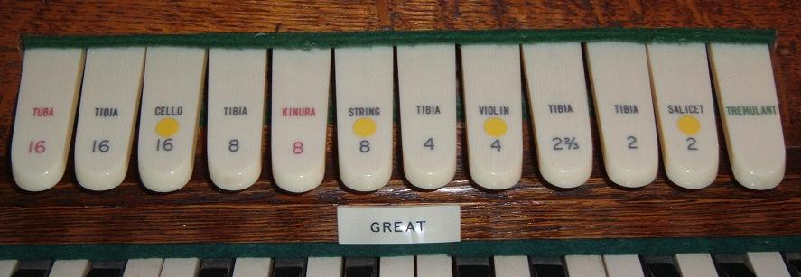 left blank so that different stop names could be assigned to different simulated organs using printed labels hung above each group of stops, as shown in