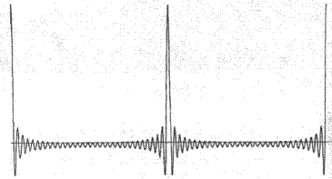Figure 8. Two cycles of a signal synthesised from 31 harmonics with equal (zero) phase after Schroeder [3]